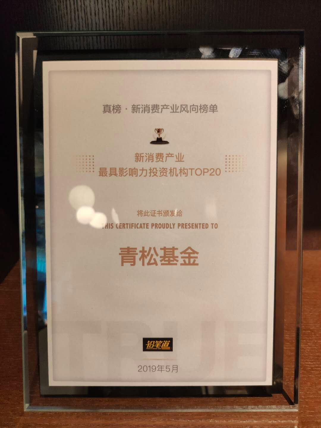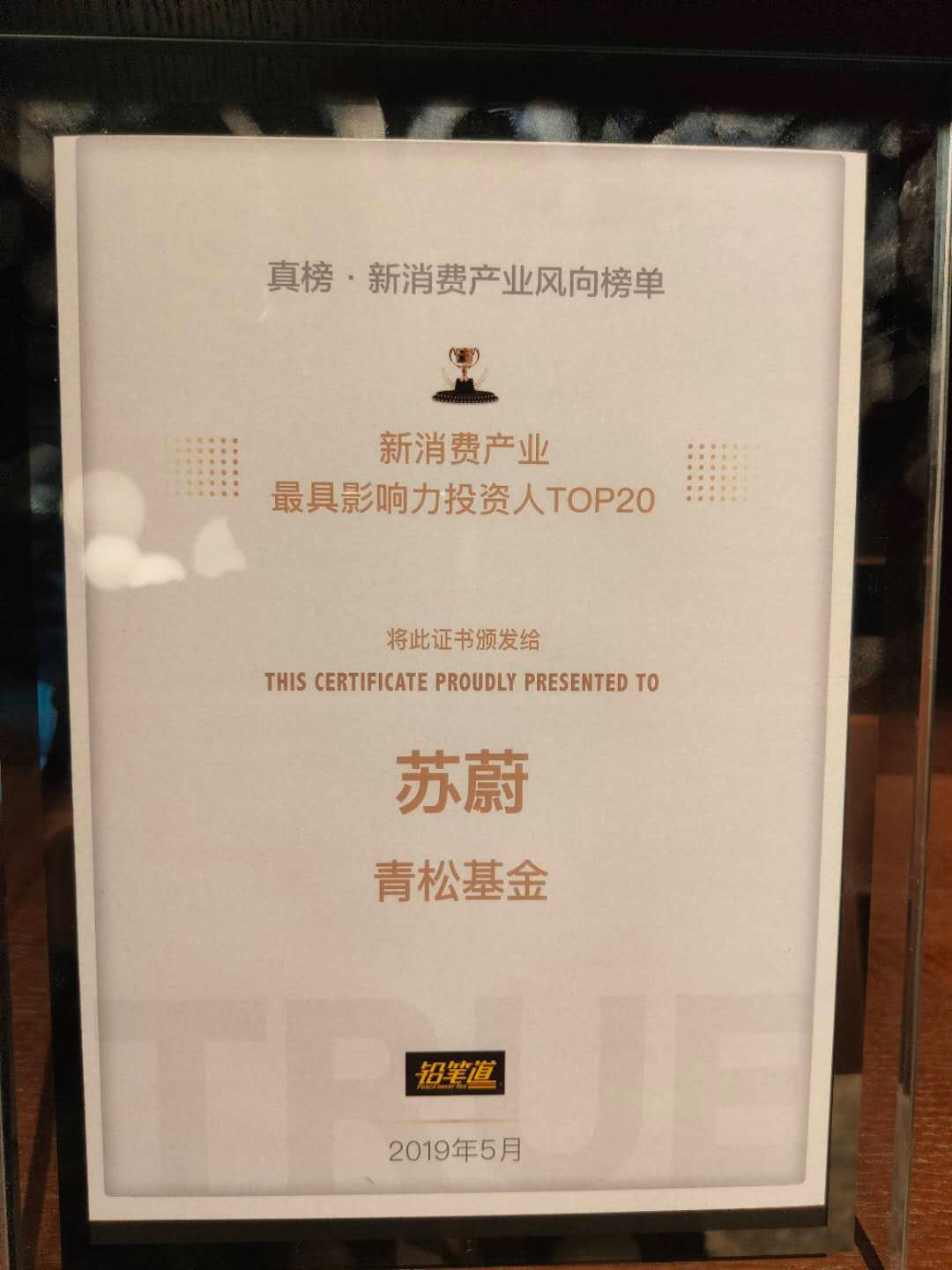青松基金荣获真榜「新消费产业最佳投资机构TOP20」,苏蔚上榜「新消费产业最佳投资人TOP20」| 青松动态
