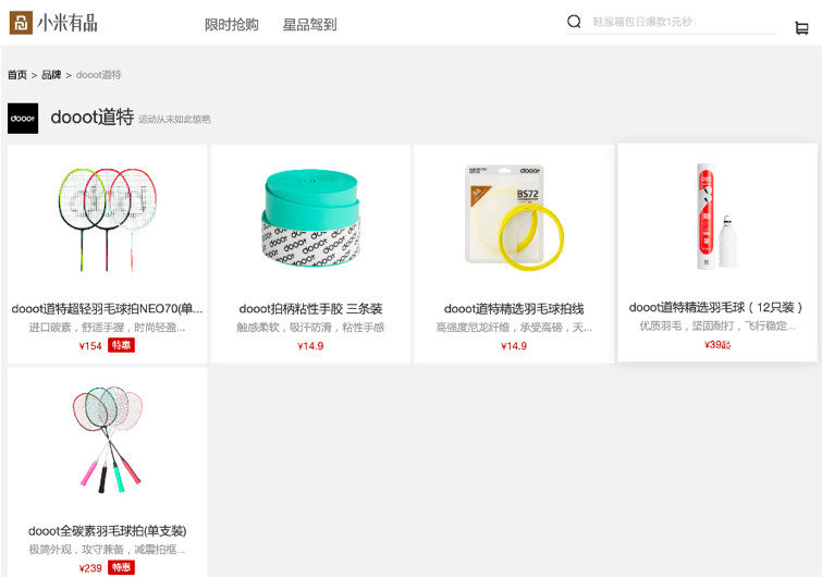 2018年3月,吴轩宇意外得到小米有品正在开发羽毛球拍的消息,他毫不犹豫带上产品来到小米总部。历时4个月,从产品本身(材质、外观、参数、工艺)到供应链、仓储物流及售后统统全部优化了一遍,2018年7年,「dooot道特」NEO80全碳素羽毛球拍在小米有品正式发售。