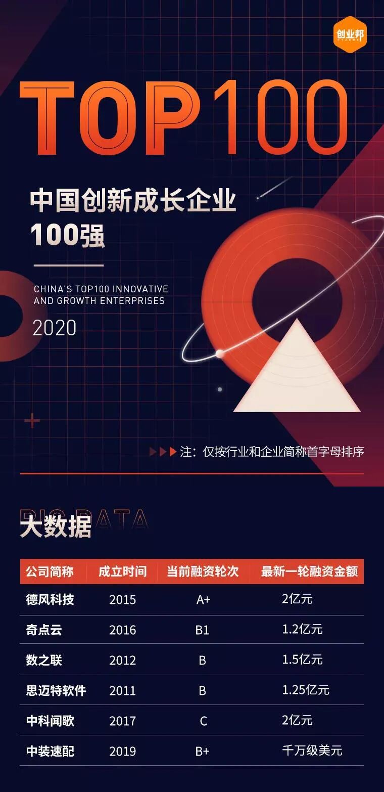 2020年是创业邦连续第12年推出“中国创新成长企业100强”的评选活动。本次评选从创新实践、成长速度、研发能力、融资情况和管理团队等维度,结合报名征集、问卷调查、走访调研、数据分析等方式,综合评选出本年度最具创新性和成长性的优秀企业。