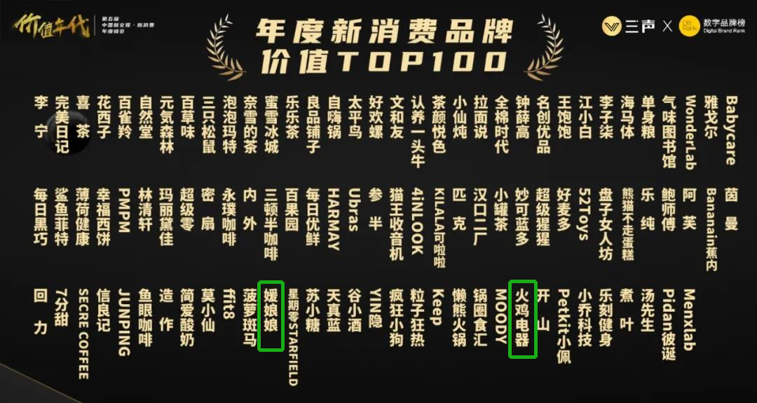 青松基金优秀被投企业媛娘娘、火鸡电器上榜,二者均是青松基金2020年投资的新消费品牌。