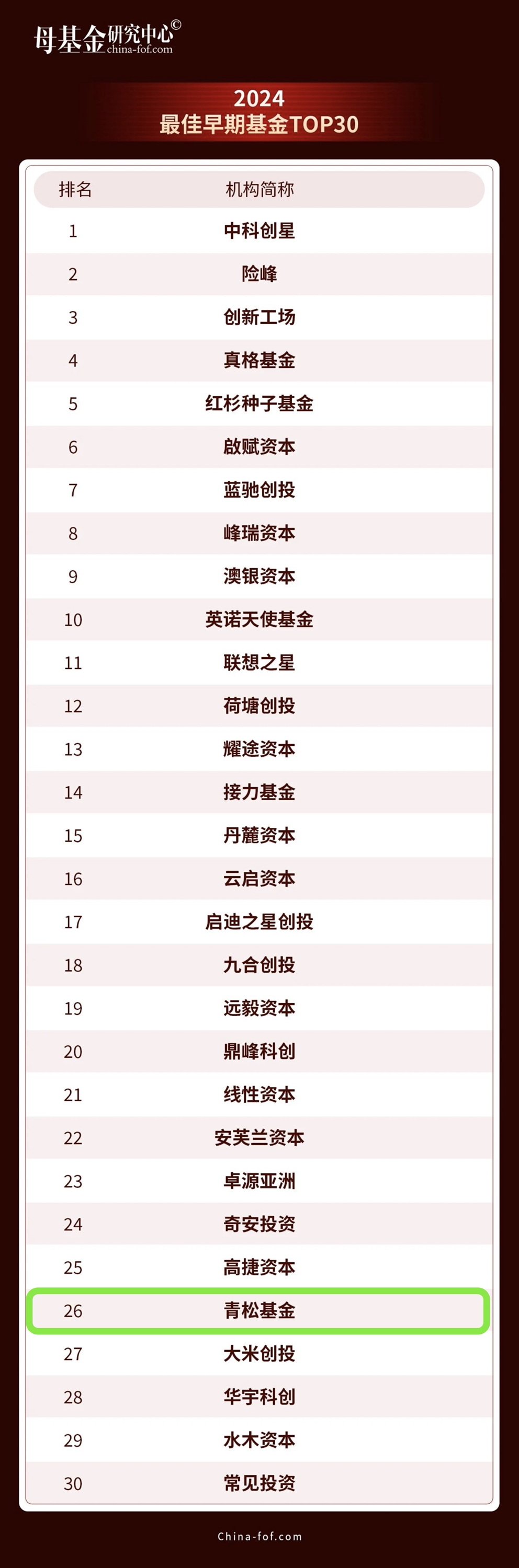 青松基金上榜母基金研究中心年度榜单「2024最佳早期基金TOP30」 | 青松荣誉